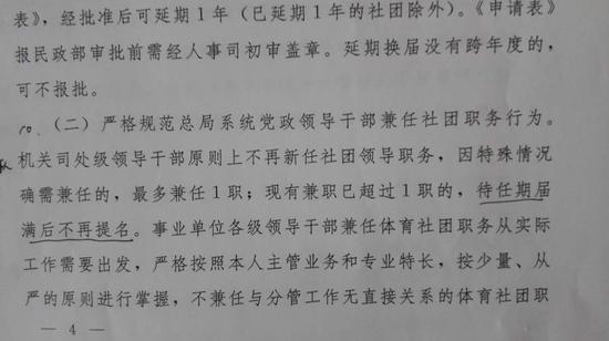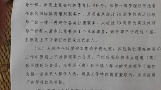 事后华以刚仔细研究了《体育总局人事司关于做好2016年全国性体育社团换届工作的通知》,发现自己的表述有些不太确切的地方,文件相关内容如下: