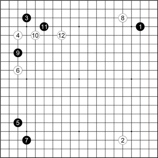 黑7拆三,白8、10贯彻无忧角的意图,继续扩张。