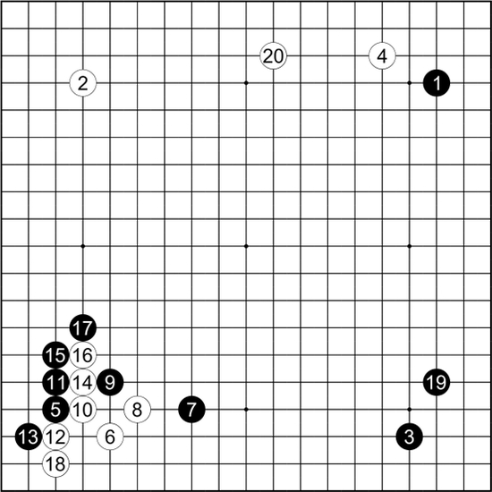 黑9夹,抢先攻角,至黑13的定式,由于深得坂田先生的钟爱,被冠以“坂田定式”的雅号。