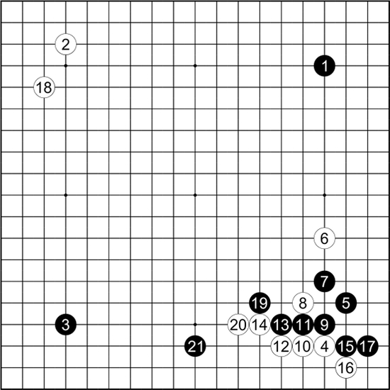 白18守无忧角,黑19、21追究白脱先之过。