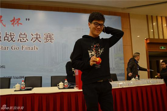 昨晚抽签的柯洁抓头憨笑尽显可爱之态,不知是否因为放松的心态带来好运,抽到韩国小将宋圭相。此盘对局没有悬念,柯洁布局在左方取得外势后,抢得先手右上挂角,此时已经进入柯洁的步调,宋圭相在中腹打入开劫,柯洁简单消劫确立优势。不知韩国小将是否面对世界围棋第一人柯洁有畏惧心理,整盘棋都显得十分拘谨,仅190手柯洁取得完胜。