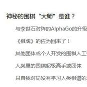 1月3日晚,大师“Master”击败柯洁,取得在网络比赛中取得对人类顶尖棋手的第50场连胜。“Master”的真实身份引发大家猜测,有超过半数的网友认为他与AlphaGo有关,还有人在“Master”与柯洁对弈的棋谱上,画出了一只小狗的图案,暗示这位“大师”是个人工智能。