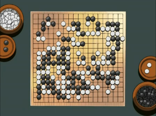 第二轮比赛,加贺战胜对手后来观看筒井和小光的对局,发现小光的对局,很有趣但是却不是能赢棋的招数。不过依笔者来看,小光这棋还不错嘛,很有武宫正树的风范。初学不久下成这样已经很棒了好嘛。