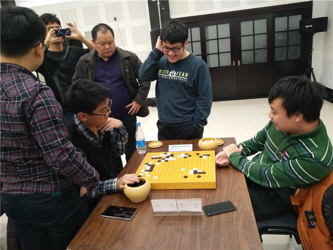 本轮严欢执黑对战蔡竞的对局最早结束,全局仅60多手。布局蔡竞在右上形成模样,严欢进入破空,此时蔡竞起了杀心,无奈计算失误未能得逞,反而要被黑棋中腹拔花,于是蔡竞爽快认输,引得其他对局棋手围观。
