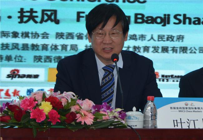 棋牌中心副主任、中国国际象棋协会副主席、国家队总教练叶江川则表示:“国象发源于东方,在西方成长,至今已经发展近200个成员国,金砖五国在国象发展史上有重要作用,本次大赛意义非凡,蕴含“亚太”、“丝绸之路”等概念,国象将成为各国文化交往、增进友谊的纽带,对国际战略服务会发挥独特作用。”