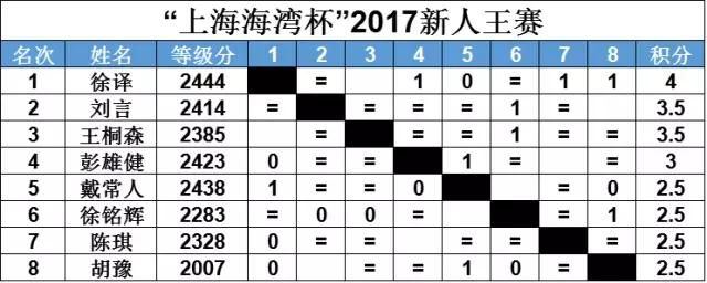 “上海海湾杯”2017年全国国象新人王赛是继名人赛和棋王棋后赛之后的第三个国际象棋头衔赛,也是第一个面向青少年棋手的国际象棋头衔赛,未来将成为每年一届的传统赛事。