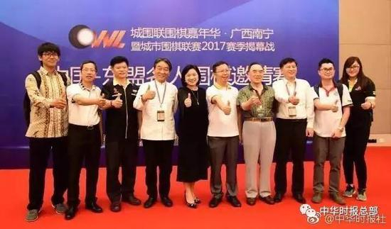 广西壮族自治区政府副主席黄伟京宣布城市围棋联赛2017赛季开幕。