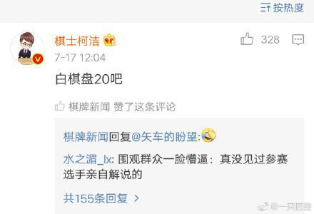 不仅让对方两子,在比赛过程中柯洁竟然还有时间在古力的微博下回复,“Alphago出现后我发现,围棋没有什么不可能。”