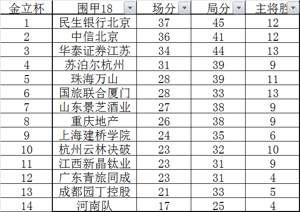 18轮后积分榜如下: