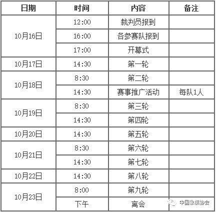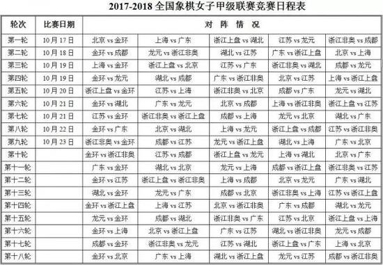 此番第一阶段赛会制为第五届女甲的上半程,赛程方面,10月17日14:30揭幕战,18日8:30第二轮,19日8:30、14:30第三、四轮,20日14:30第五轮,21日8:30、14:30第六、七轮,22日14:30第八轮,23日8时第九轮(第一阶段赛会的最后一场)。首轮中,卫冕冠军广东大战上海,北京迎战金环,浙江上盘VS湖北,江苏PK龙元,浙江非奥与成都,谁主沉浮呢,拭目以待,新一届女子象甲联赛的精彩,关注女子棋手漂亮棋局!