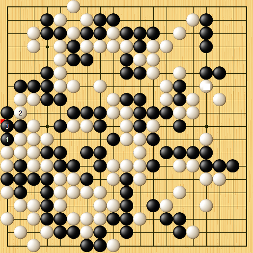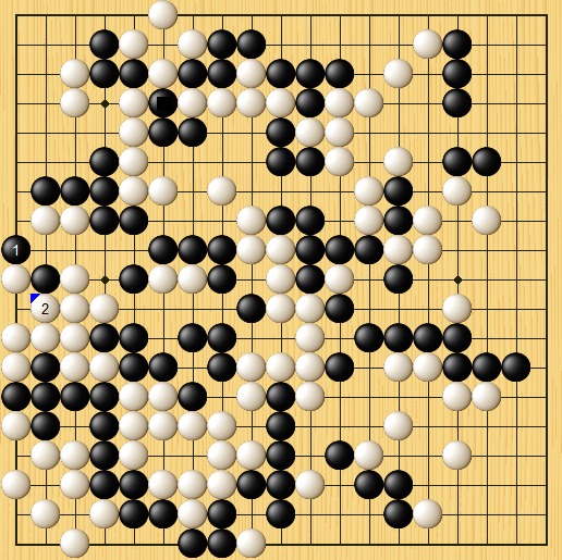 双方在此开始噼啪一通打劫,黑棋在左边寻劫,这里辜少年下的稍显随手,没注意到申旻埈在这里阴着“东西”,黑提白再打时黑竟能团上,左边变为净死,棋局瞬间结束。