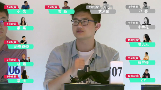 众人发过一轮言后,警长ZY最后归票7号艺术家。投票环节1号、2号、3号、10号和12号5人把票投给7号;4号、6号投给5号;5号投给1号;7号投给4号;11号投给10号,7号艺术家被票出局。遗言环节7号亮出自己的猎人身份,并相当肯定10号喵大人是一张狼人牌。不过当决定开枪带走哪名玩家时,7号艺术家着实“艺术”了一把,也许是想多留我们的美女喵大人一会儿,在颇有意味的一句“10号你愿意跟我走吗?”没有被积极回应后,他选择开枪带走了2号,NBA主播晓晨,晓晨大概懵逼了3秒之后,在甚至没有留一句遗言的情况下,只能无奈离场。