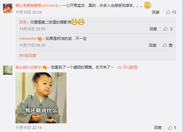 机智的网友表示:“注意到了,说不定是公司跟拍的小哥哥 ”。当然也又不忘挑事的:“柯洁宝的点赞来的”。