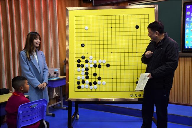 20日上午,国家队总教练俞斌、美女棋手黑嘉嘉进入到钟山区第二小学,为学生们讲解围棋,亲密互动。学校的老师特地摆了一盘俞斌亚洲杯比赛的对局,再次看到这盘棋俞斌感慨万千。小朋友们见到俞斌和黑嘉嘉十分开心,纷纷将六盘水吉祥物“白鬓猴”玩偶送给他们,黑嘉嘉怀里的礼物堆得已经抱不下了。下午,刘菁与黑嘉嘉继续搭档为大家进行大盘讲解。
