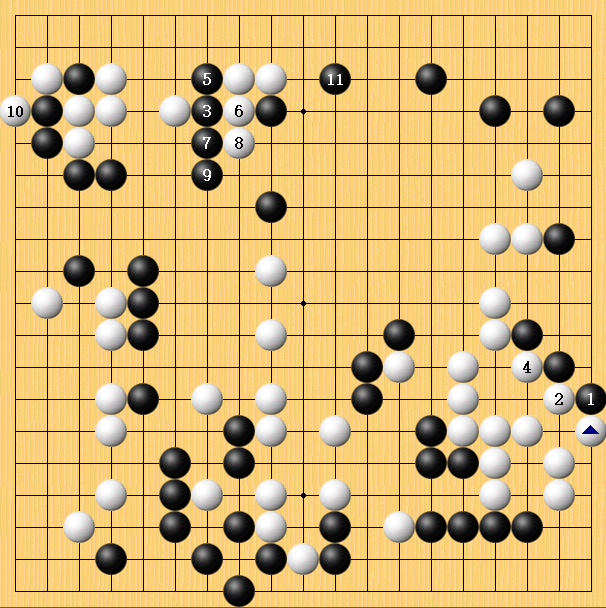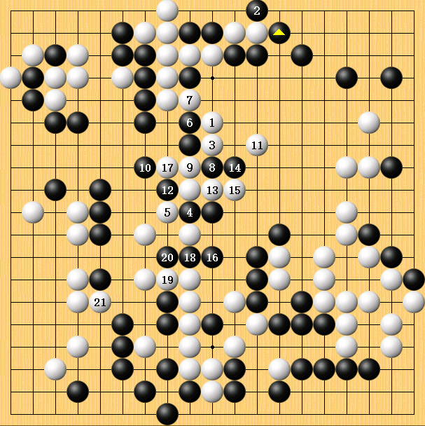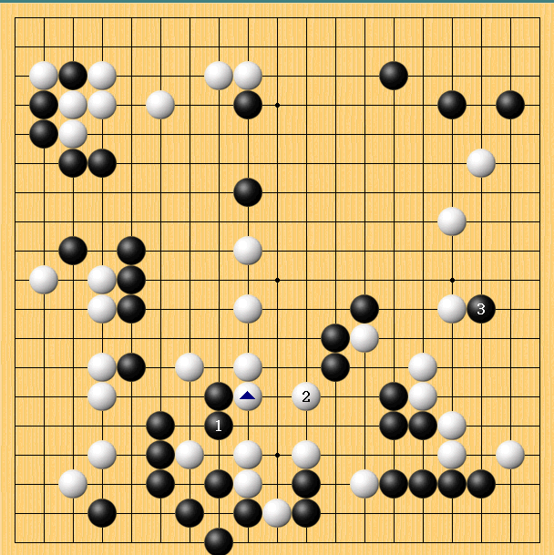 此时白棋四周通厚,单单攻击一块孤棋并非易事,此后黑棋眼见攻击无果,又开始打入白方右边肥硕的大空当中,并在里面生出一劫。只是全盘黑棋劫财较少,随后双方形成转换,黑棋将白上方分为两块,白则将右边拔得通厚,面临实空不足的黑棋准备对上下两块未安定的白棋发动缠绕攻击,奋力再搏。