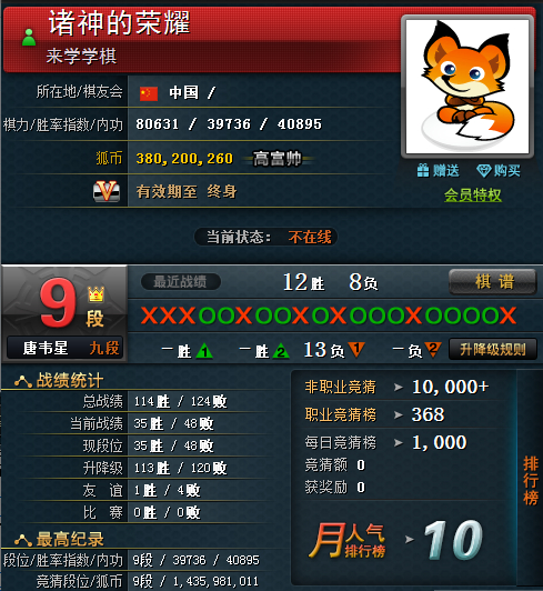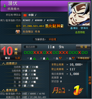 心情不佳的潜伏登陆野狐,笑笑陪他一起下棋↓