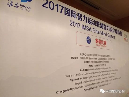 本次大赛由国际智力运动联盟、国家体育总局棋牌运动管理中心主办,江苏省体育局、淮安市人民政府、江苏省发展体育基金会、江苏省体育产业集团承办,江苏省棋牌运动管理中心、淮安市体育局协办,江苏省体育竞赛有限公司运营推广,这是淮安连续第二年承办国际智力运动联盟智力运动精英赛。象棋分为男子个人赛、女子个人赛,参赛资格根据2016年世界象棋公开赛团体赛成绩分配,其中男子组十二人,先两个小组、每组六人5轮单循环,再同名次决赛,女子组6人五轮循环制。