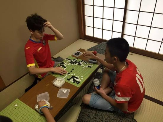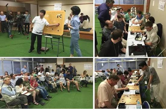 大阪夏令营总部:始终是很有热度的,基本是半夜才会散去。2015年关西棋院常务理事今村俊也九段和国际围棋联盟官员重野由纪女士来到夏令营做队际赛讲解嘉宾;关西棋院中野泰宏九段给各国爱好者进行多面打指导棋(右下);村川大介王座亲临闭幕式,与夏令营冠军下了纪念对局。