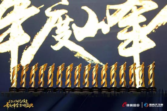 2017体育大生意年度评选保持往届的16大奖项的规模,但根据产业热点的变化调整了奖项内容,最佳电竞赛事、最佳体育新锐赛事、最佳体育小镇成为新增奖项。各个奖项综合专业评委投票、大众投票、专业机构评分以及大数据分析来产生最后的优胜者。16个奖项的开颁奖嘉宾均由一位体育产业大咖和一位体育明星搭档,前中国男足主帅米卢也专程来到现场观礼。以下为16大奖项的具体结果(按颁奖流程排序):