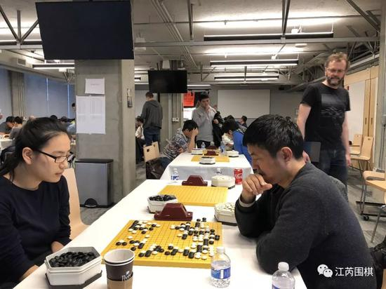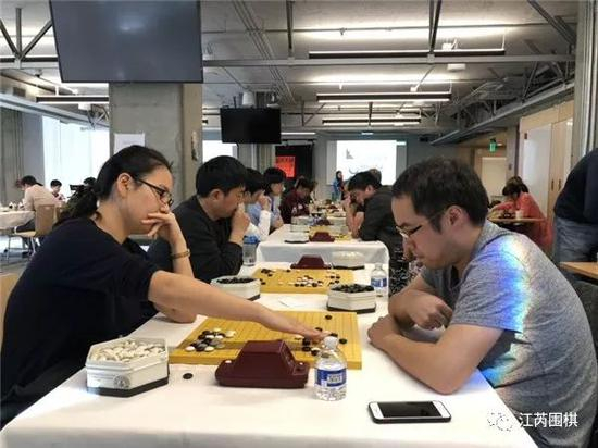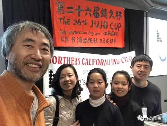 这次比赛设了专业组,有六名选手参加。其中来自韩国的女棋手李夏辰三段是最为引人瞩目的。李夏辰在韩国时曾在比赛中淘汰过芮乃伟和赵慧连。之后做起了行政管理工作,担任过国际围棋联盟的秘书长。2016年AIphaGo和李世石人机大战的时候,整个活动都有她的影子。也正是在处理国际围棋事务的工作中,她遇到了人生的另一半,并随着心上人刚刚移民到了美国旧金山地区。专业组就她一个职业棋手,获得冠军自然是意料之中。第二名是芮乃健六段。他当年曾夺得两届全国大学生冠军,这次带着太太和双胞胎女儿可言可心,随姐姐乃伟来美国游玩并参加铸久杯。乃伟因为有韩国女子联赛,上午到赛场和老朋友们见面,中午就要往机场赶,只能请所有选手在赛前合影,留个纪念。