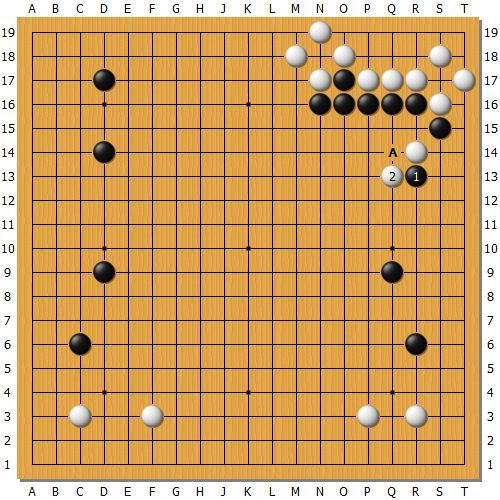 变化图1:黑1打这里是局部常见定式,这样黑右上就跟左上有一些配合。但当时我感觉被白6拆以后,还要补A位的征子不舒服,便没有选这个图。