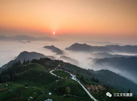 三江县布央仙人山景区,纯朴的侗寨+秀美的茶园,有着世外桃园般的意境,犹如一幅韵味无穷的山水画,给人一种回归自然和超凡脱俗的感觉。
