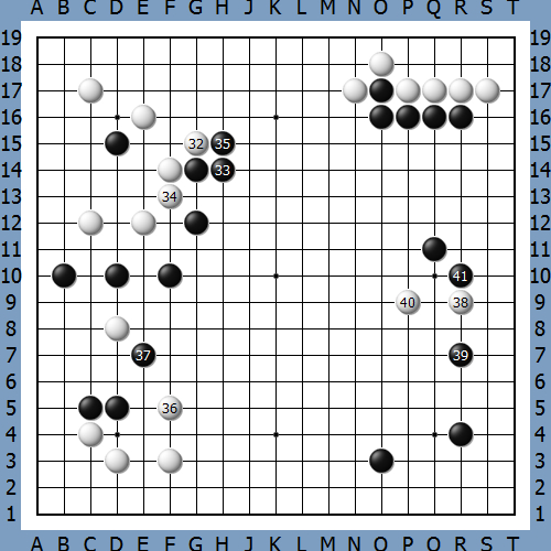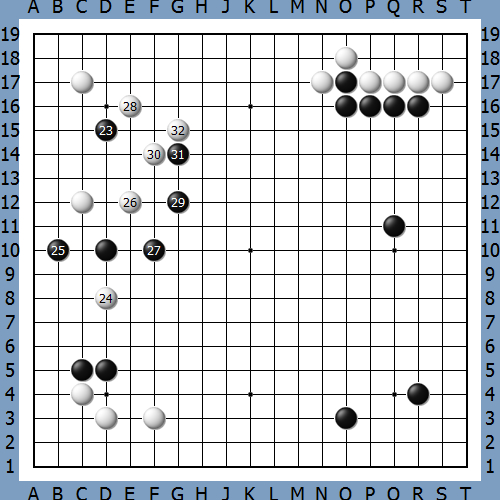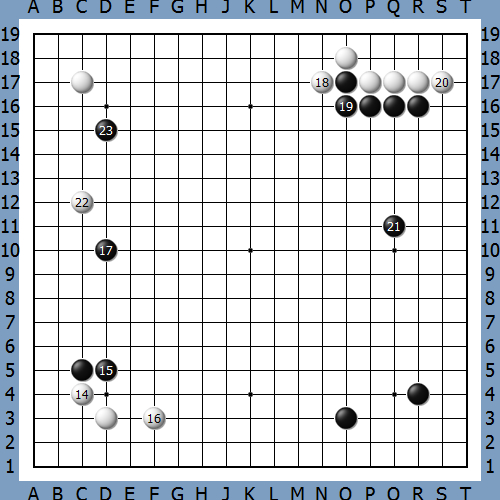 黑23星阵认为大跳是好点,之后进程如下图(黑盘面3.4目)