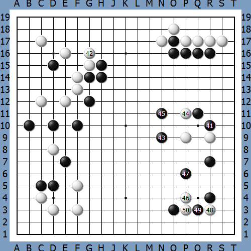 实战白棋在右侧腾挪成功,黑棋大势已去。