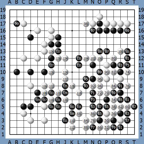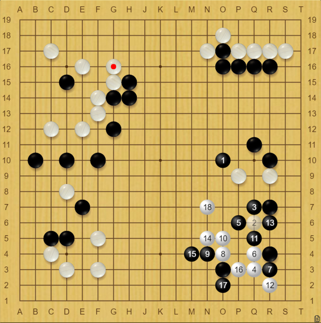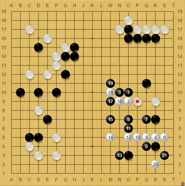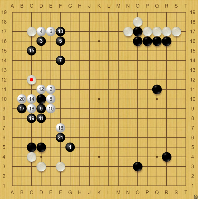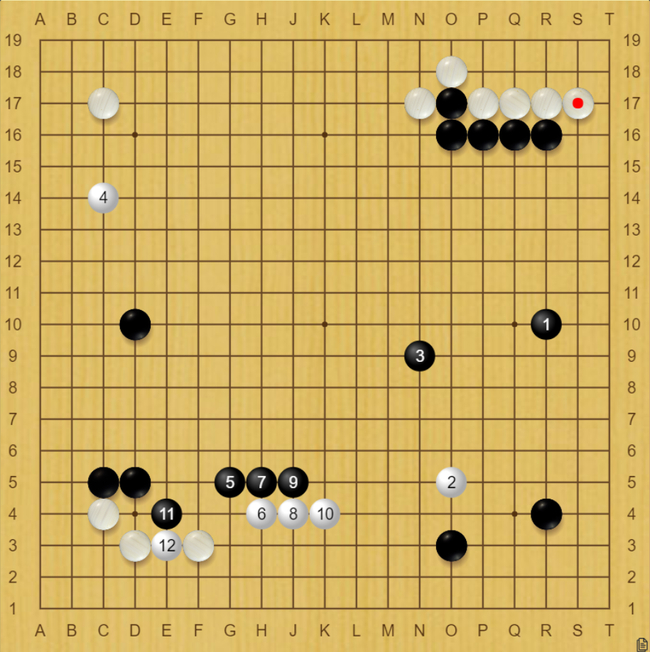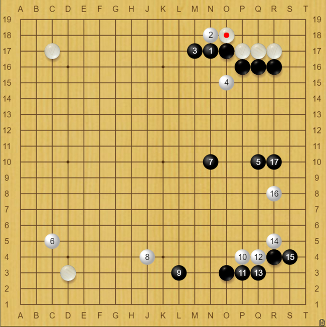 黑13时星阵推荐可以在右上继续走,之后进程如下图(黑盘面4.7目)