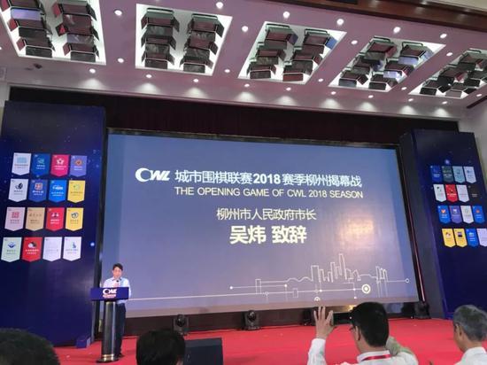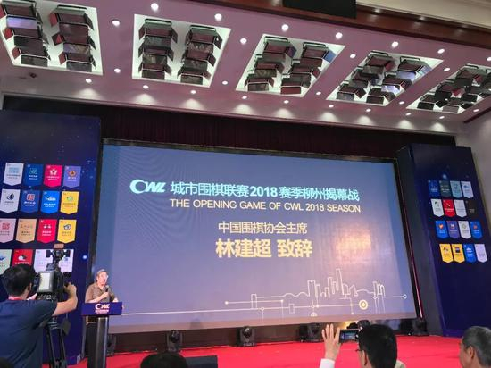 城市围棋联盟理事长容坚行,柳州市政府市长吴炜,中国围棋协会主席林建超先后致辞。广西壮族自治区副主席黄俊华宣布城市围棋联赛2018赛季开幕,杜鹰、黄建初、林建超、聂卫平、唐宁、李泽、吴炜、王汝南共同见证并参与了本赛季揭幕战仪式的启动。