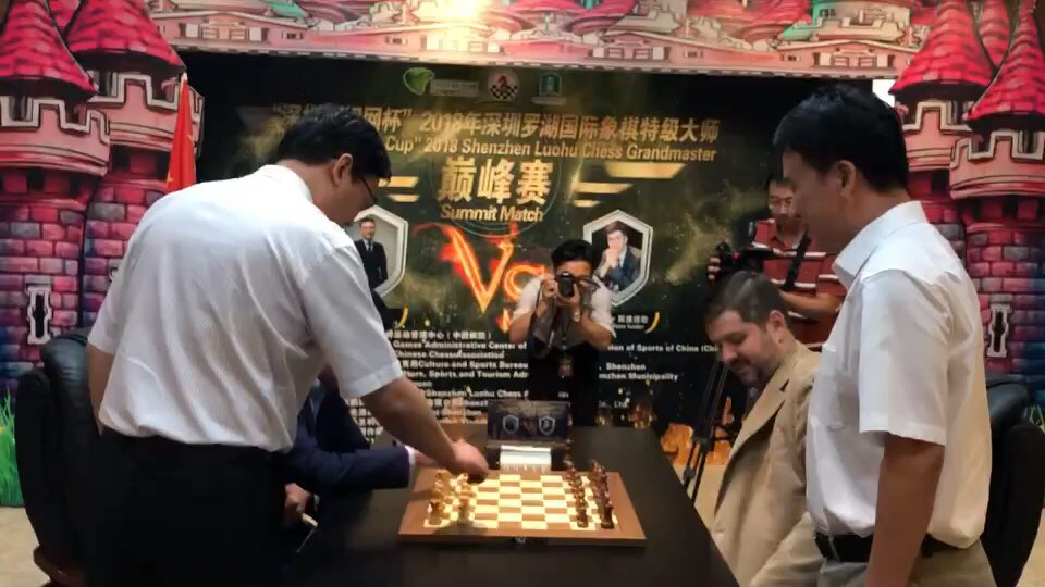 6月12日,“深圳新闻网杯”2018深圳罗湖国象特级大师巅峰对抗赛在深圳市罗湖区阳光酒店揭幕。中国棋手余泱漪与俄罗斯老将斯维德勒展开了4轮快棋(10分钟+10秒)的战斗,最终余泱漪以4战1胜1和2负3比5暂时落后斯维德勒。