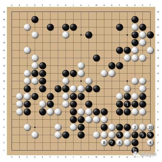 图五:王立诚白1收单官,其实也是打吃。柳时熏竟然置之不理,黑2也收单官。白3提子……