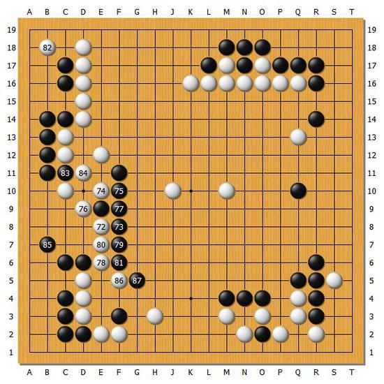 [图8]白棋在这一带行棋还是相当坚实,不过在中央的判断依旧是本局的一大难题。