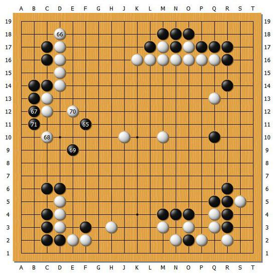 [图14]之后发生了转换,但是白棋在劫争中明显获得便宜,白棋也因此逆转获胜。