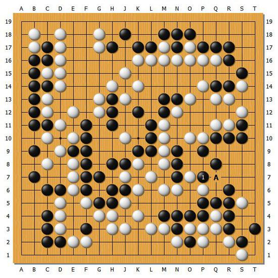[图7]黑89实战在A位小飞了一手,此时黑棋选择在下方先交换两下感觉也是不错的选择。