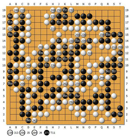 结果:共271手 白4目半胜