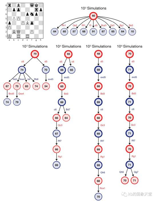 (AlphaZero如何处理局面,搜索招法的图表分析,图片来源于Science杂志)