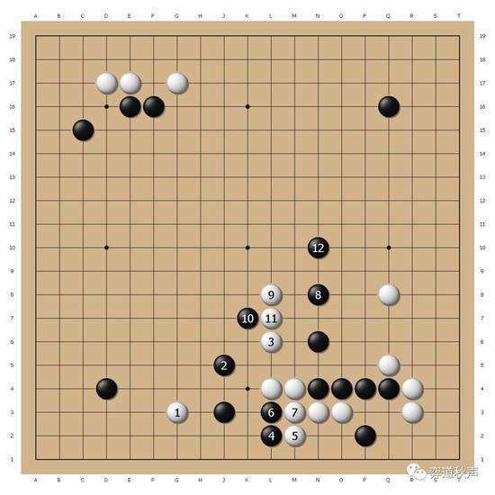 到黑12,双方竞相出头,白棋落后一步。白1一子再活动的话,将形成几块棋的纠缠,就棋形而言,白棋更容易落入被动。