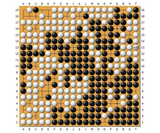 之后AlphaGoZero依旧是不知道生死的情况下反复吃来吃去。所以虽说棋盘只能下361个地方,但是下看这么多手数。最后就下成了这个图。
