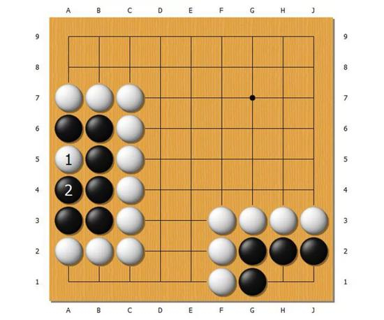 但是,通过自我学习的AlphaGoZero,刚开始是时候就不知道“两眼活棋”的道理。这一点我们可以从AlphaGoZero公开的自我对局的棋谱中可以看出来。
