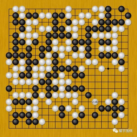 当伊凌涛白236(白三角一子)飞断黑棋时。