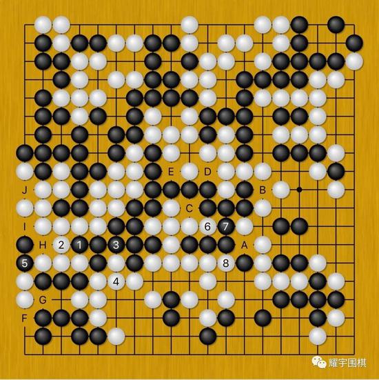 这样中央黑大龙的气就可以计算了:从A至H,黑共有8气。