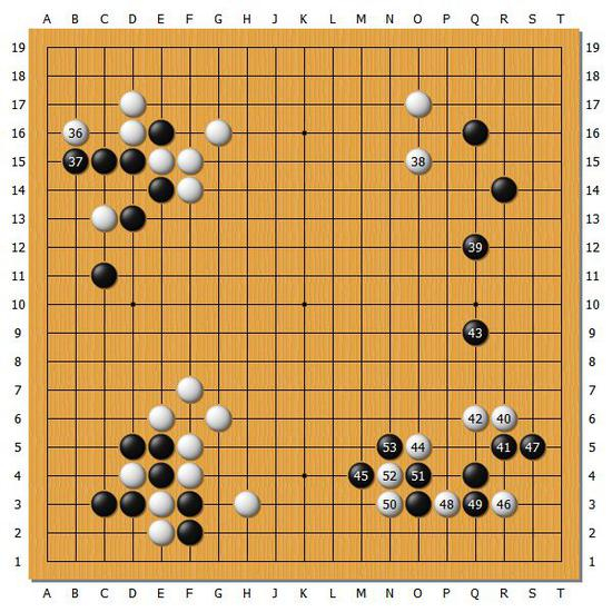 【图2】黑51和黑53是强手,黑棋在这里占据了优势。