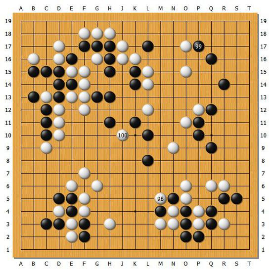 【图7】当黑99继续保持治孤态势,白100开始对黑棋进行猛攻。