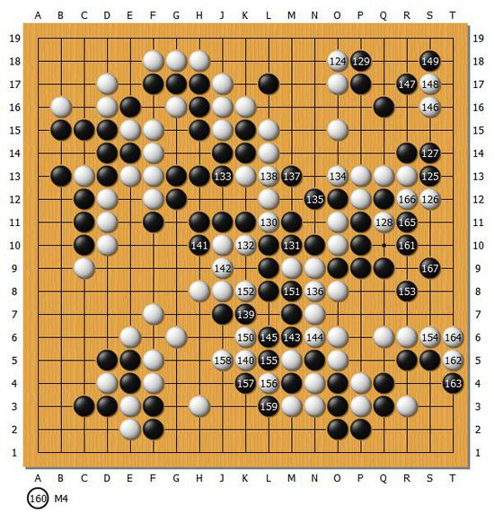 【图10】白130和白146的连续进攻紧追黑棋,这里白棋的手段相当严厉。