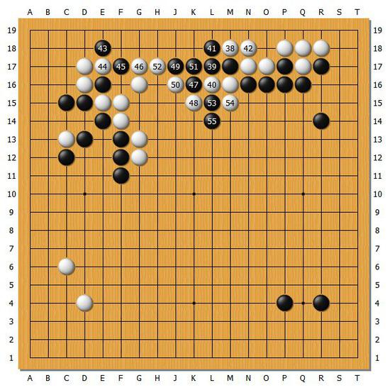 [图2]黑35和黑37之后,局面一下子就进入战斗局面。