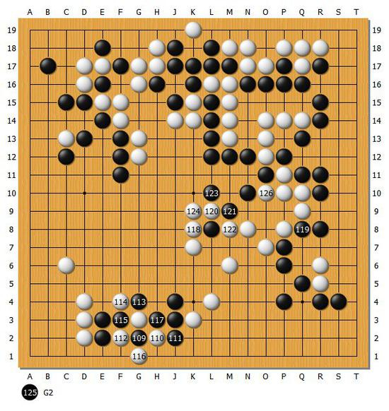 [图5]此后白棋需要考虑如何进攻下方的黑棋,实战的白106和白108相当严厉。
