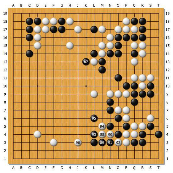 【图6】但是黑棋之后选择在右下角进攻白棋,这一带黑棋的进攻非常猛。相信崔精九段也下出一身冷汗。