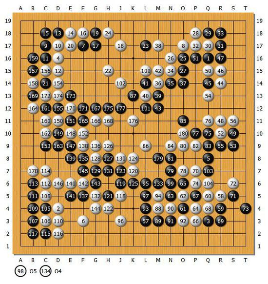结果:共180手,白中盘胜