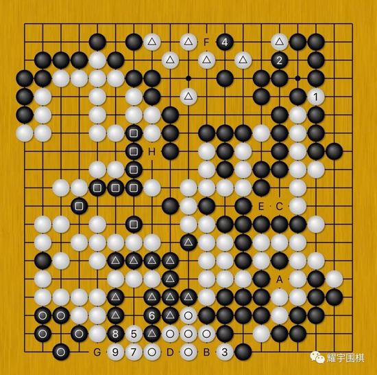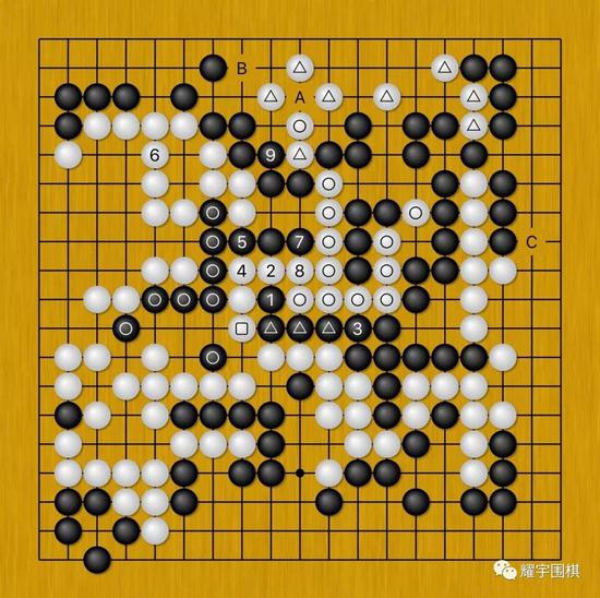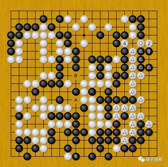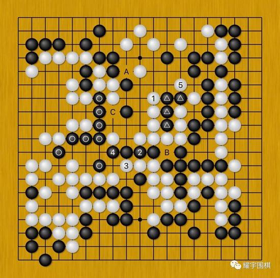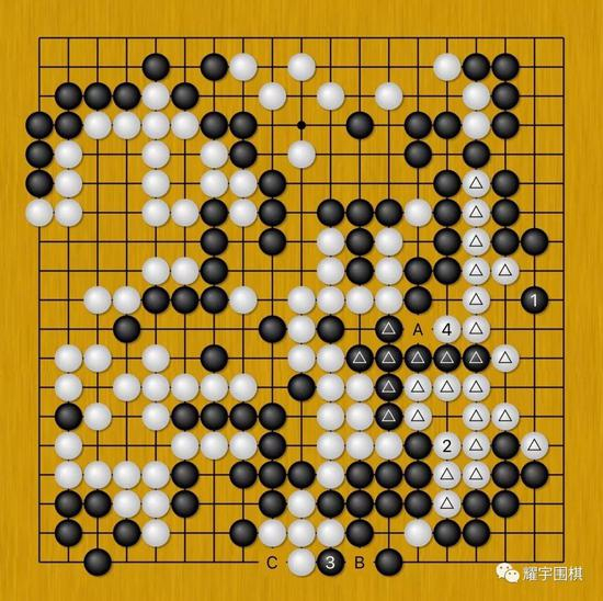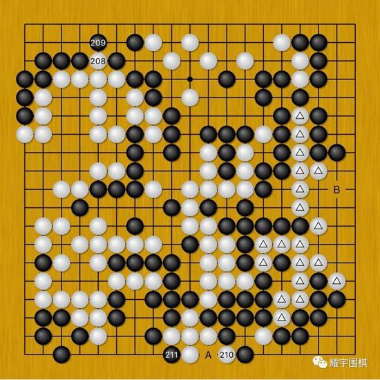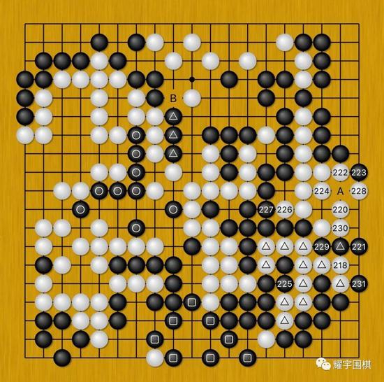 图19:黑217(三角一子)一点后,之后右边的进程就成必然。